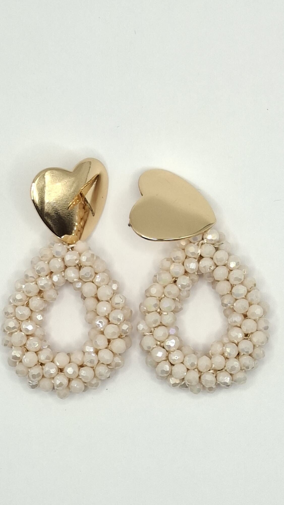 kraaltjes oorbellen met hartje, kleur: beige