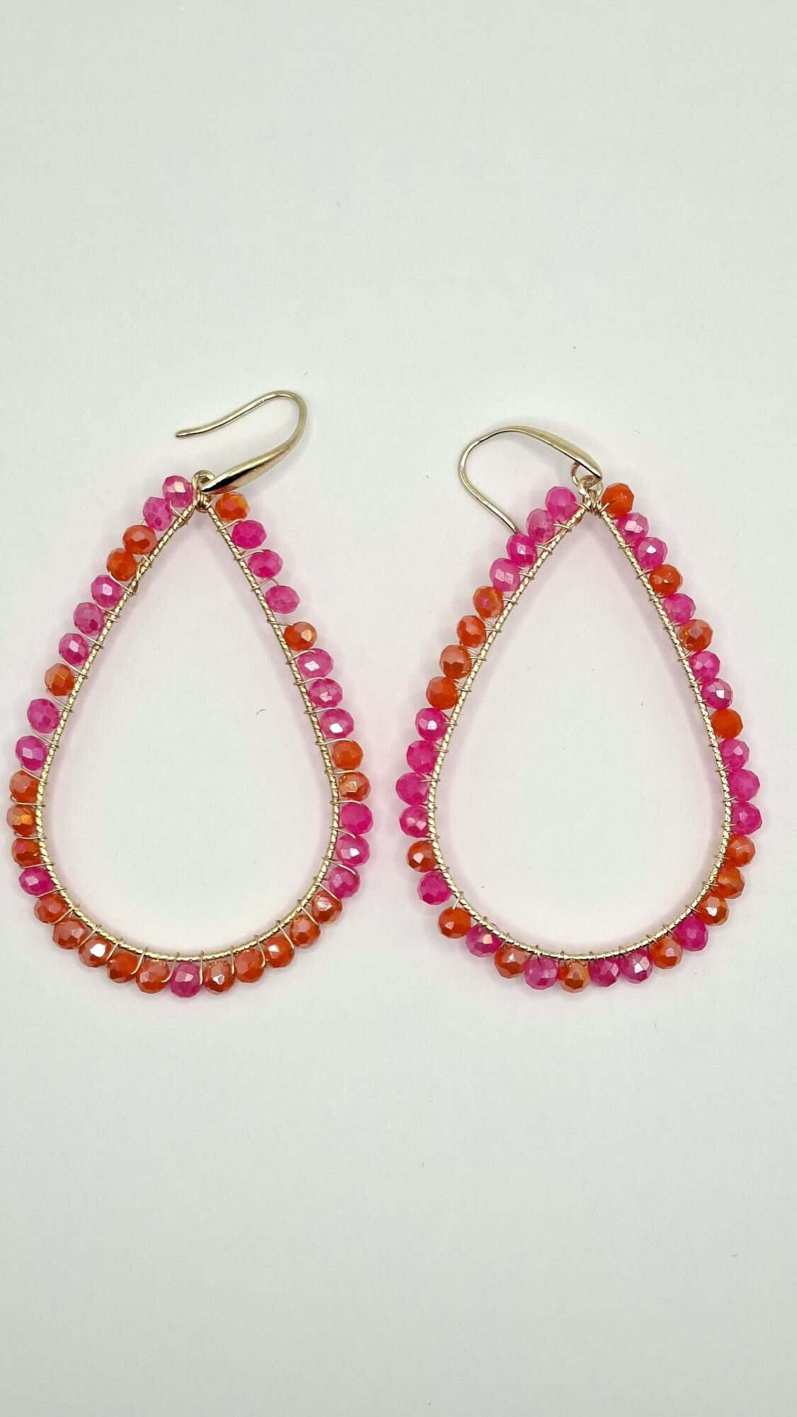 Oorbellen met kraaltjes, kleur: fuchsia mix