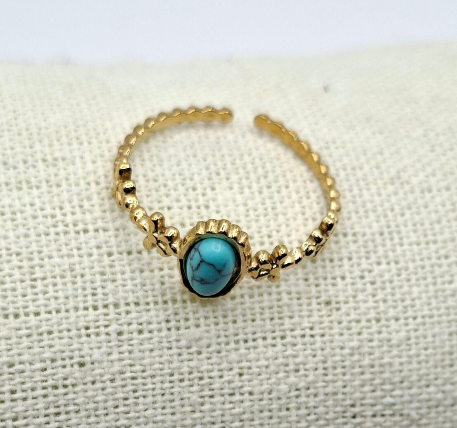 Ring met blauwe steen, gold look
