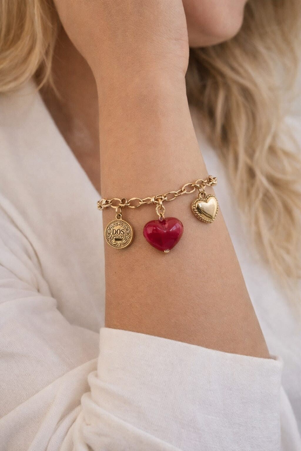 bedelarmband met rood hartje gold look