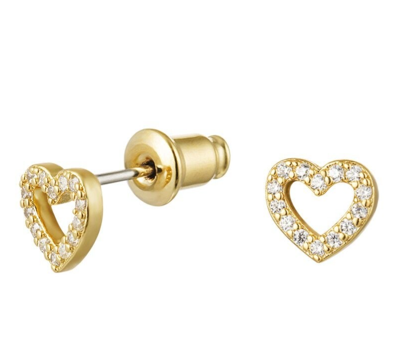 Oorbellen steker hartje, gold plated/koper
